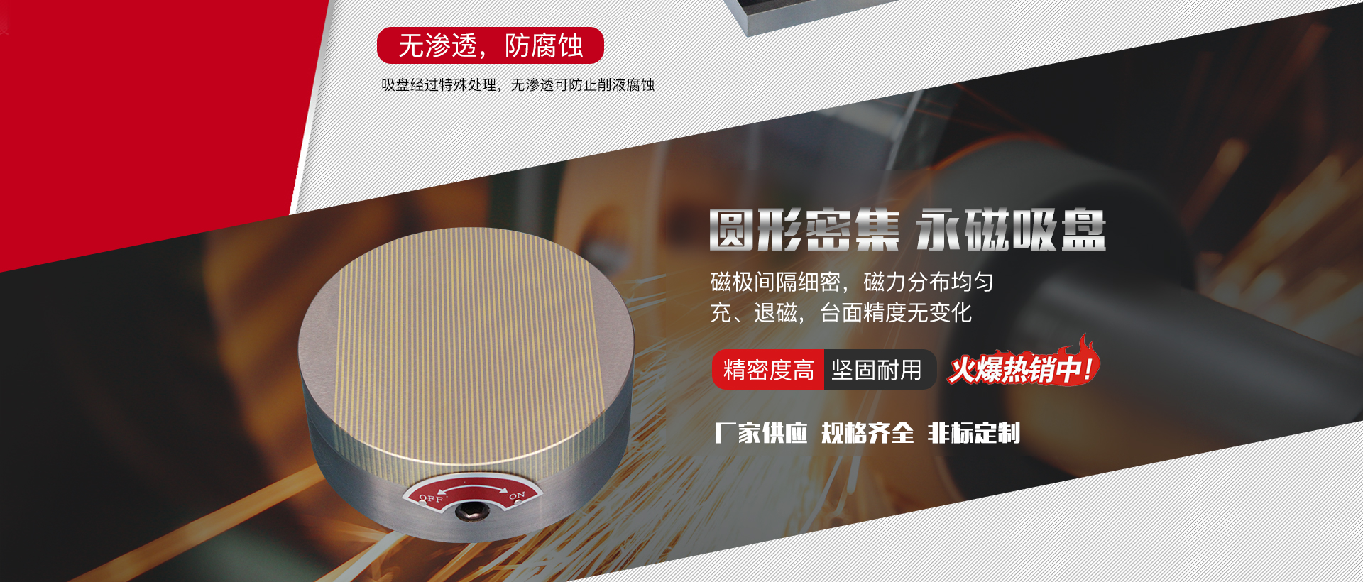 電永磁吸盤的界定:電永磁吸盤是融合電磁感應(yīng)、稀土永磁特點(diǎn)的而開發(fā)設(shè)計(jì)的新式工裝夾具。選用脈沖電流"開和關(guān)"的新式磁力吸盤...